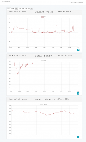 Arduino 2024.07.04 暑いです。以前から動作しているSigFoxのボードの湿度センサーの値が、おかしいんです BME280が、エアコン消して結露してしまったのか100%のまま1週間くらいもどらない。